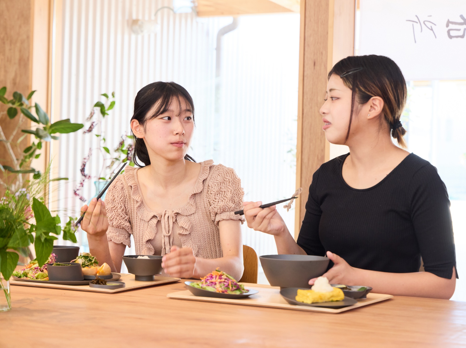 料理は、弊社の保育園で給食メニューの献立を監修している栄養士が考案。出汁をとるところから始まる、手づくりのごはん。地元の野菜や旬の食材を大切に、ひとつひとつ丁寧に。いろんな人の手と想いがつまった日々のごはんを、味わえるカフェを目指しています。